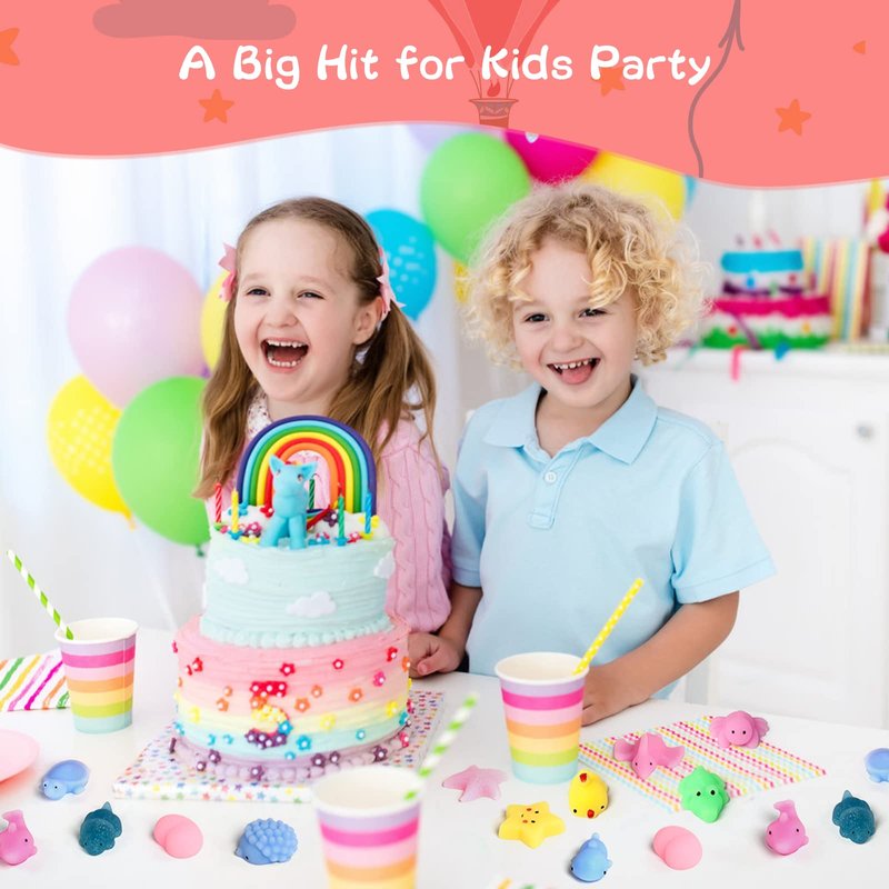 - Kids Party Favors:Animal squishy toys are great idea for Easter egg filler or Easter egg hunt as deluxe egg prizes, or Easter goodie basket stuffers on Easter party favors. They can also be used as birthday treat bags bday party goodie bags, Valentine's Day classroom gifts, Christmas gift bags present, Halloween treat bags or pinata toys, fill in moj moj claw machine with goodies as claw game prize toy.