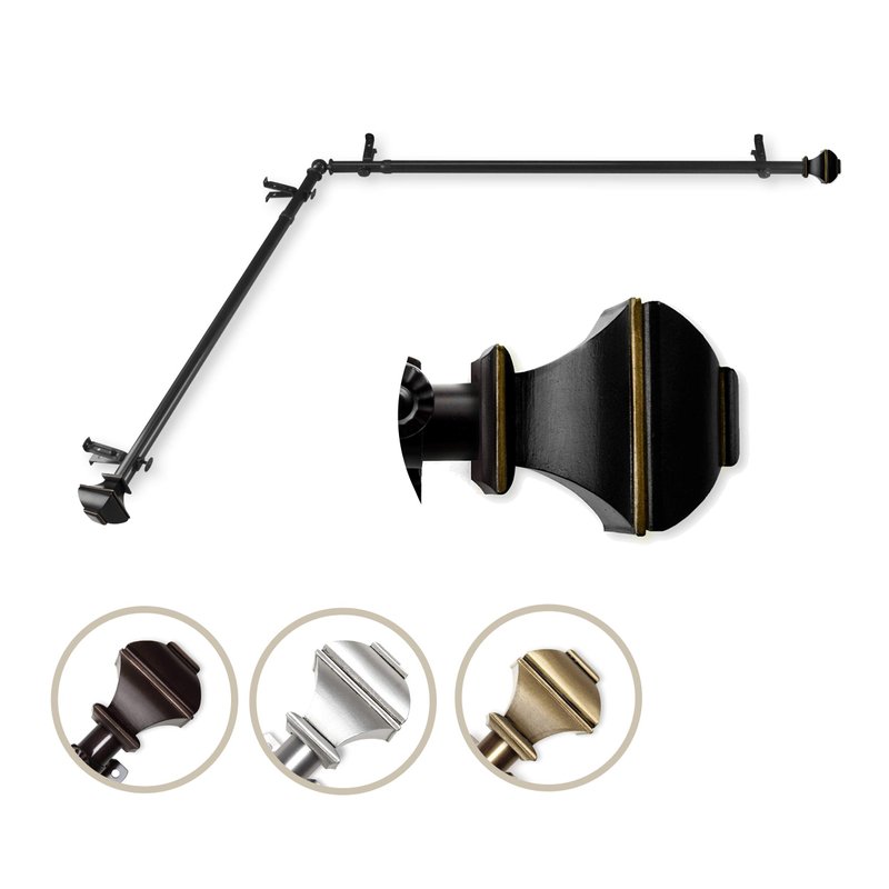 A&F Rod Decor - Phife Corner Window Curtain Rod 48-84 inch (each side) - Black