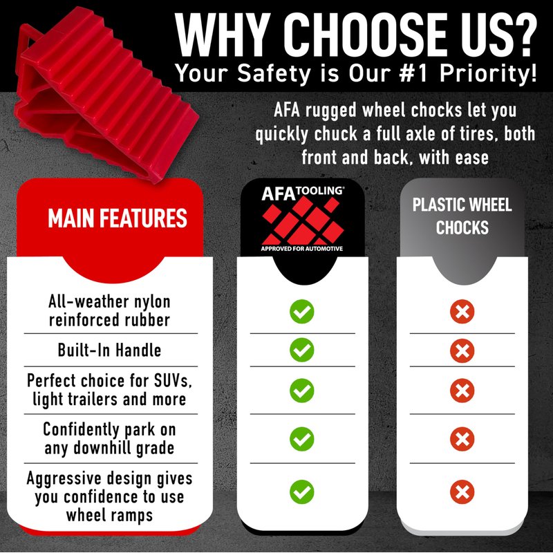 AFA Tooling - Lightweight Wheel Chocks w/Ez-Carry Handles - RV Wheel Chock for Front and Back Tires - Quick Grip Ribbed Design - Great for Your Camper, Trailer, RV, Truck, Car or ATV - 2 Pack