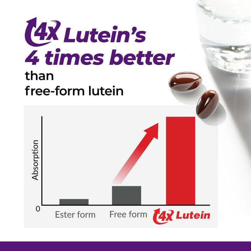 - Advanced nutrient delivery for better absorption: Powered by patented nutrient delivery, Lutein 4X offers up to four times better absorption than standard lutein. This technology ensures that each dose delivers targeted support to help maintain healthy eyesight. With the added benefits of Zeaxanthin and other antioxidants, this formula supports vision and retinal health for overall eye comfort and wellness.