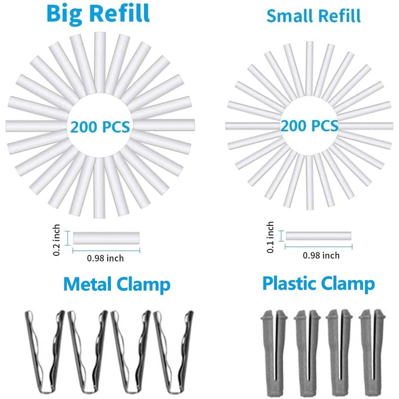 - Come with 200 big refills, 200 small refills, 4 plastic holders and 4 metal holders.