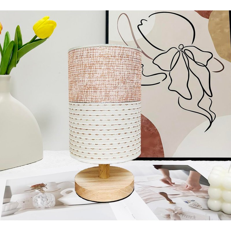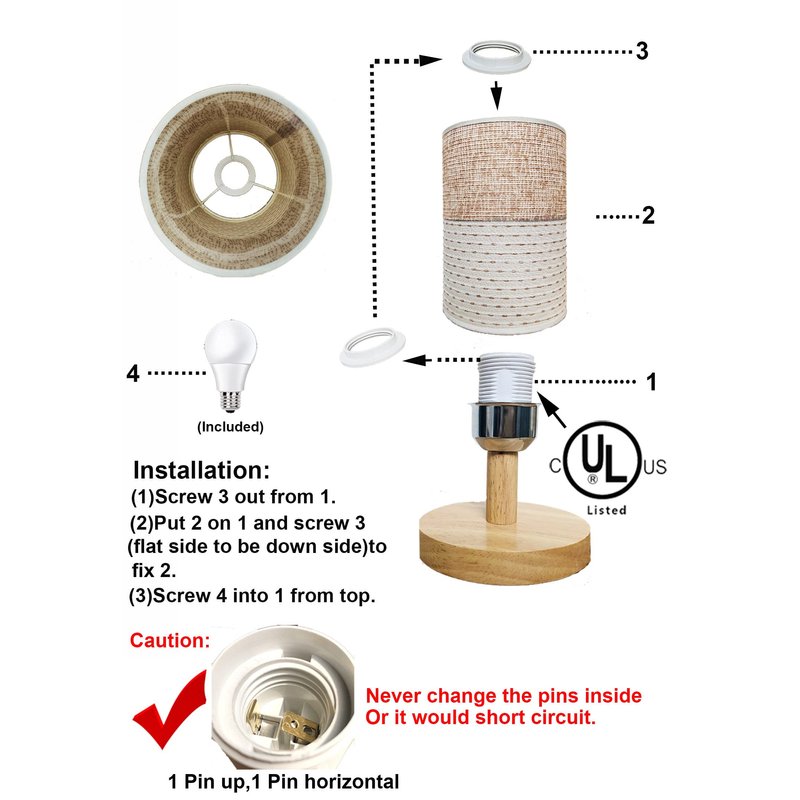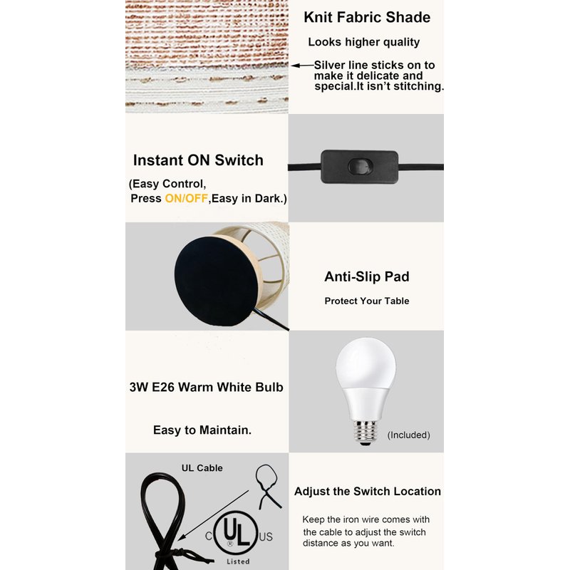 - ✔Unique Patern Design: Brown Knit fabric shade with wood base,nature and easy to match the decoration and furniture in your house.