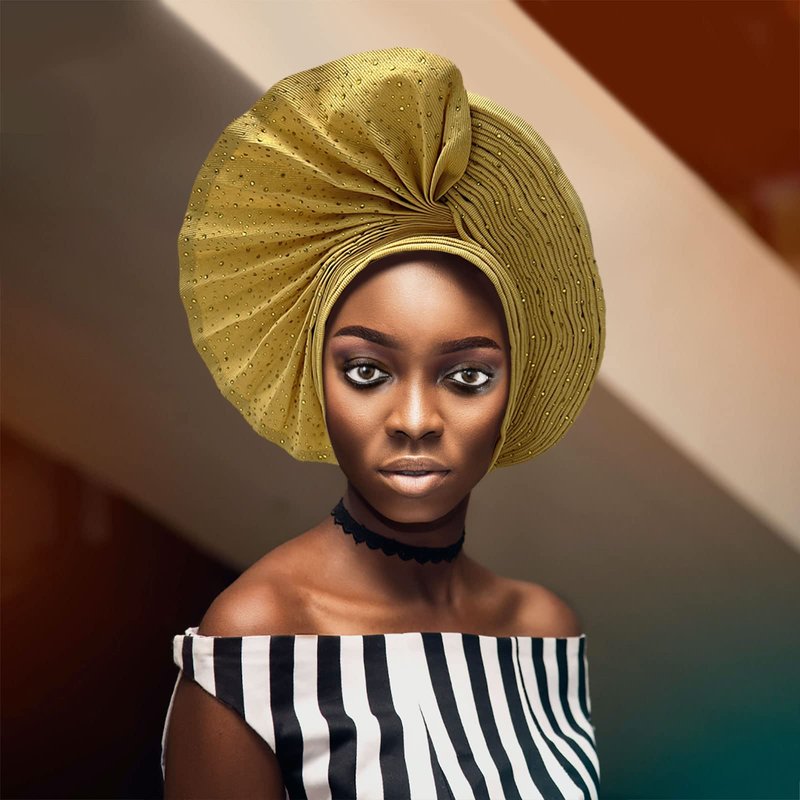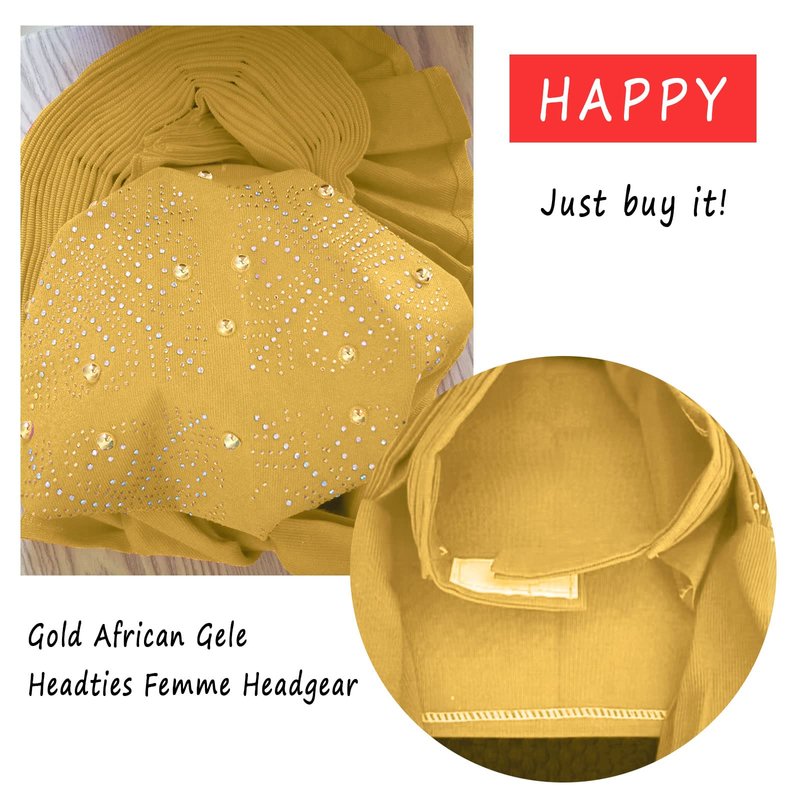African Head Wrap Already Made Auto Gele Headties Women's Turban Hats&Caps Beading Wedding Nigerian Fashion Headbands (Gold)