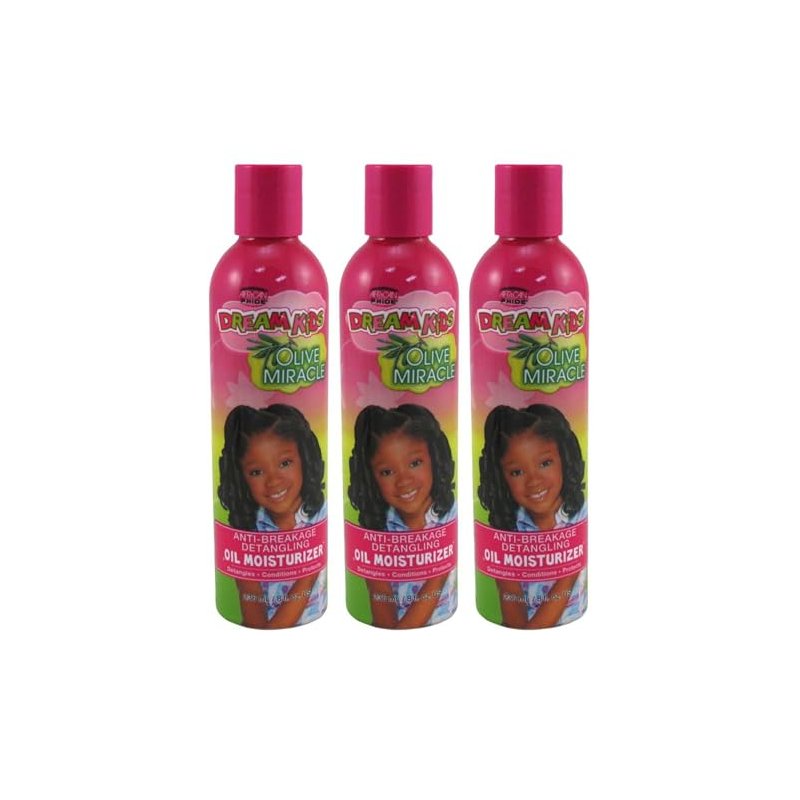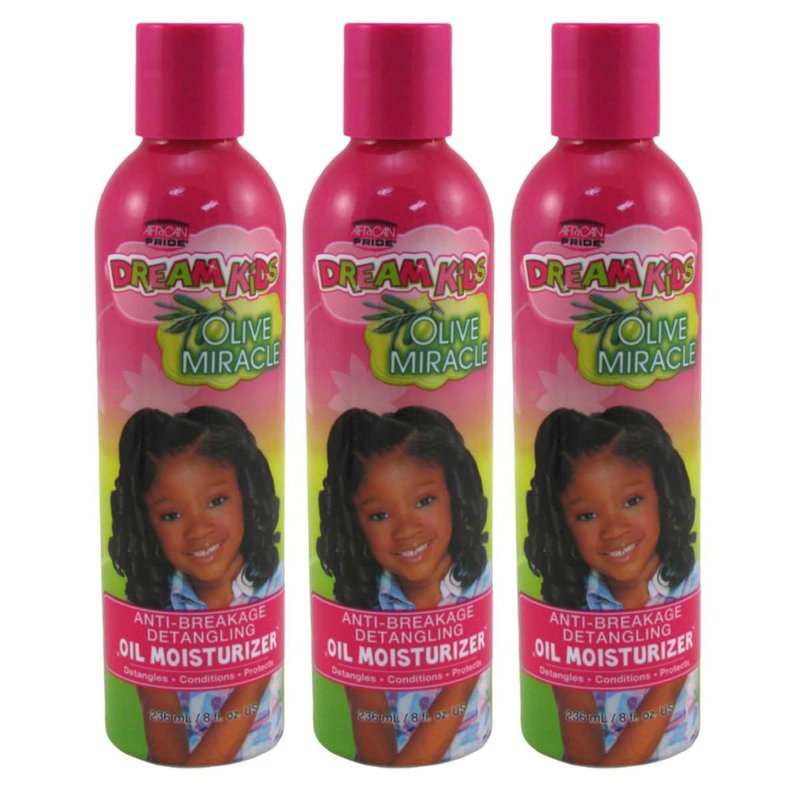 African Pride Dream Kids Olive Miracle Anti-Breakage Detangling Oil Moisturizer (3 Pack) - Contains Olive Oil, Detangles & Reduces Hair Breakage, 8 Oz