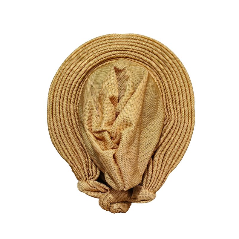 African Women's Turban Hat Stylish Gele Gemstone Headpiece, Perfect for Wedding Parties. Auto Gele HeadtiesNigerian Toe Cap (Polyester, Gold)