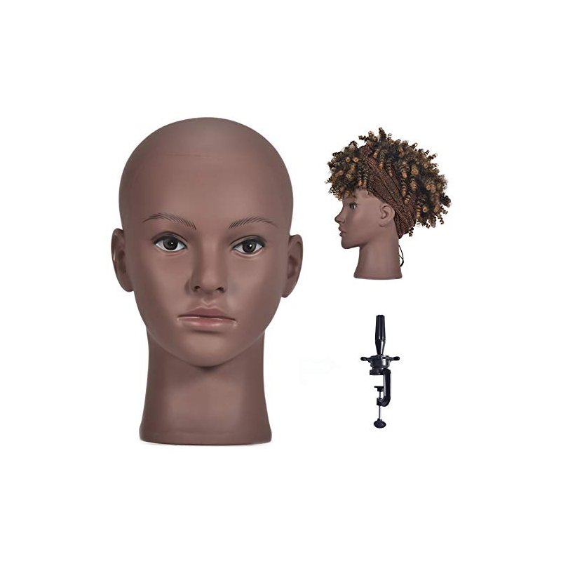 Afro Cosmetology Mannequin Head Bald Manikin head for Wigs Making Wig Display Hat Display Glasses Display with Free Clamp