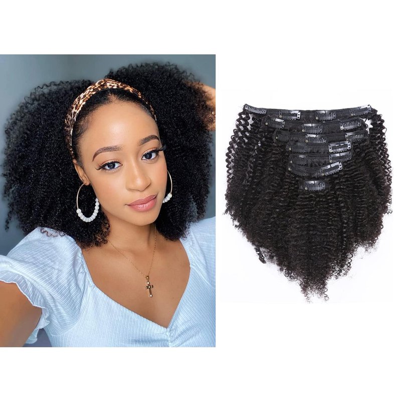 Afro Kinky Curly Clip in Human Remy Hair Extensions Brazilian Curly Clips Hair Extensions 4B 4C 8A Virgin Thick Natural Black Color Clip on For Black Women 10-22 inch (10 inch, AC #1B)