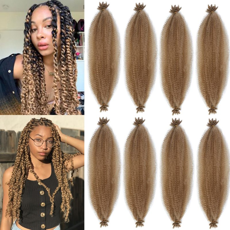 Afro Twist Hair 28 Inch 8 Packs, Springy Afro Twist Hair Pre Fluffed Spring Twist Hair Pre Stretched Wrapping Hair for Soft Locs Hair Extensions (8-27#)