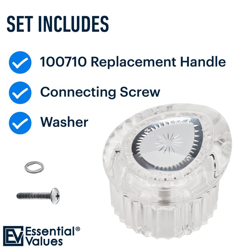 - EASY INSTALLATION: Durable and strong plastic construction that’s designed to last for years to come. Our compatible Moen clear knob shower handle 100710 comes complete with instructions for easy install.