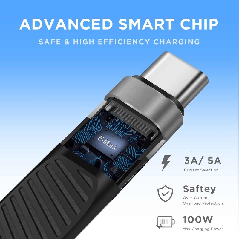 - ⚡ RAPID 100W CHARGING: Power up your devices with lightning speed. This cable supports up to 100W output (20V~5A), making it perfect for your smartphone, tablet (like the iPad Pro), and laptops, including MacBook.