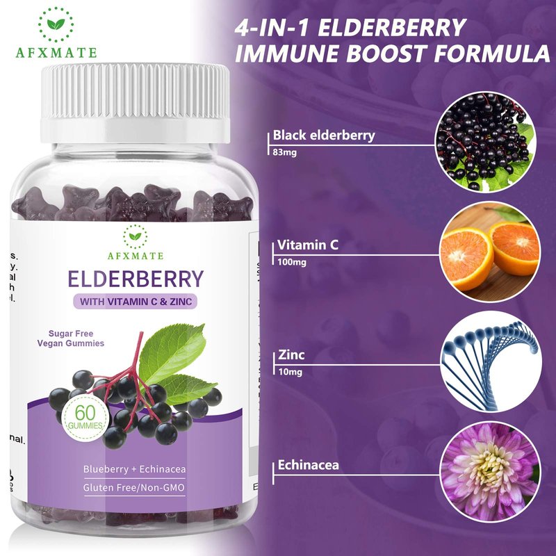 - 4-in-1 Premium Support: AFXMATE Elderberry Gummies combines the health benefits of Vitamin C, Zinc, and Black Elderberry helps your overall health