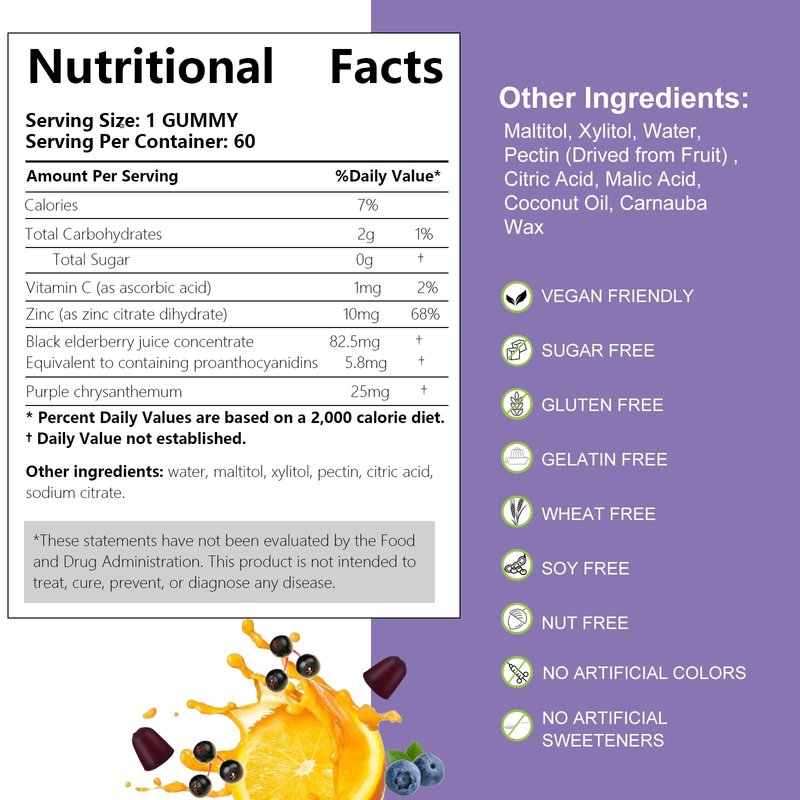 - These sugar free elderberry gummies combine the health benefits of vitamin C, zinc and black elderberry extract to support your overall health