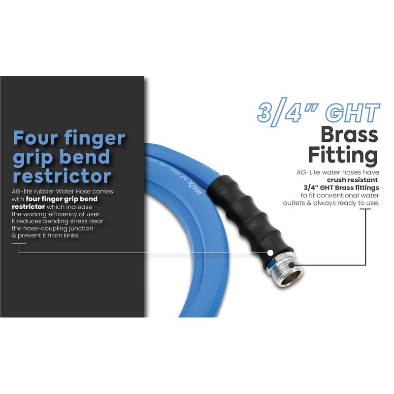 - LIGHTEST, STRONGEST: 30% lighter and still rubber, AG-Lite is a professional grade next-generation rubber hose with a 10-Year replacement warranty. The lightest and strongest rubber garden hose on the market.