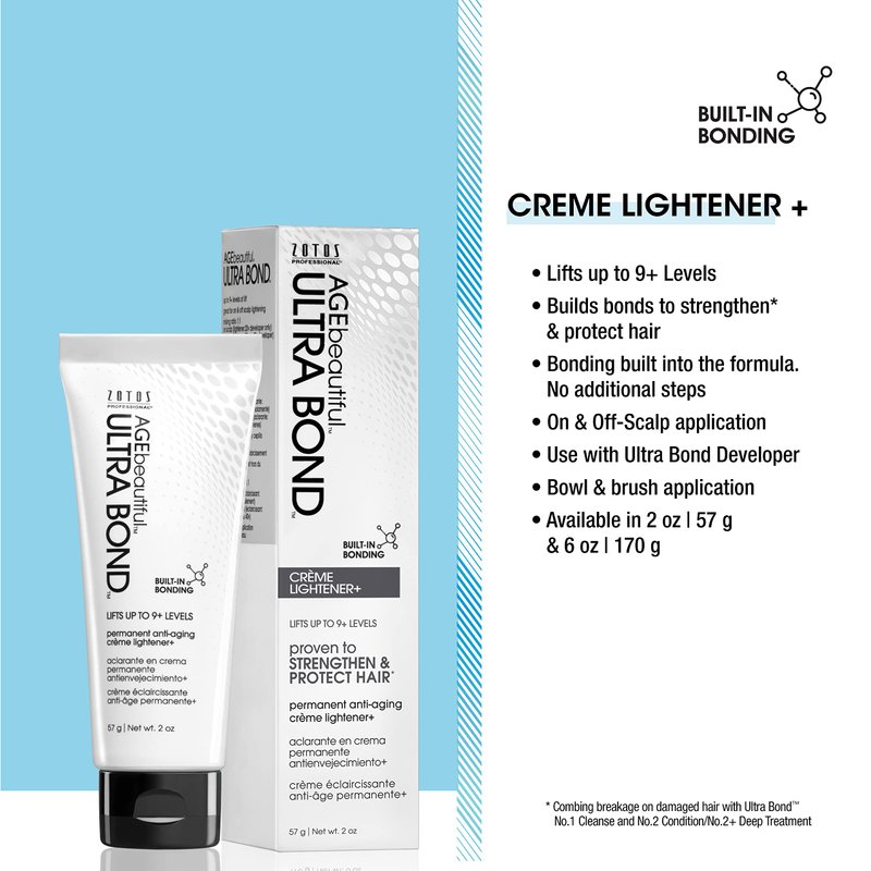 AGE beautiful Permanent Crème Hair Lightener with Ultra Bond Building | Strengthens, Protects & Nourishes | Lifts up to 9+ Levels | For Highlights & Lightening | 2 Oz