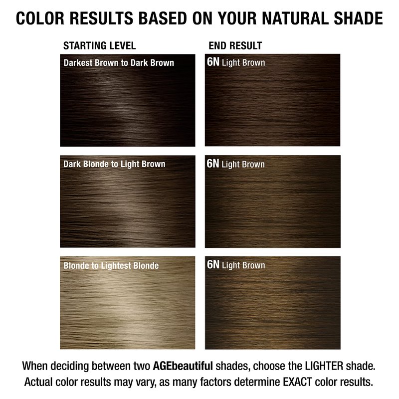 AGE beautiful Permanent Hair Color Dye Liqui Creme | 100% Gray Coverage | Anti-Aging Haircolor | Biotin for Thicker, Fuller Hair | Professional Salon Coloring | 6N Light Brown