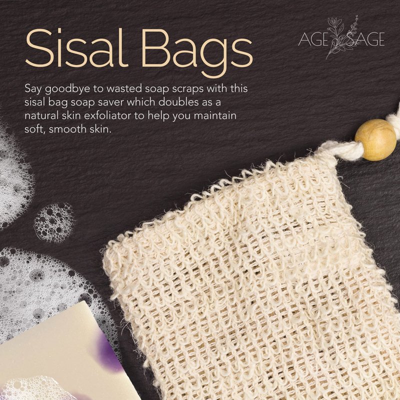 - COMES IN A SOAP BAG: Our shower products each come in a sisal pouch that serves as a body scrubber. Made with natural fiber, the sisal soap pouch lets you slide the soap with an excellent grip as it gently exfoliates your skin. The pouch also serves as a soap saver bag as it enhances the foam lather of soap and helps dry the body bar soap between uses.