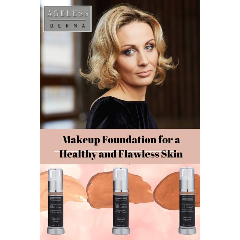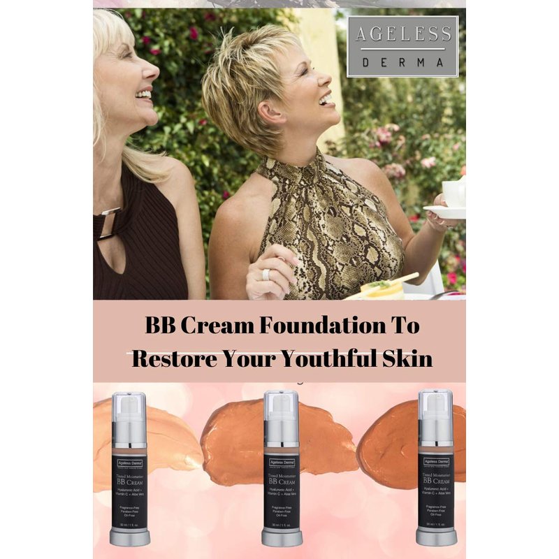 Ageless Derma BB Cream Tinted Moisturizer Foundation with Hyaluronic Acid and Vitamin C. Made in USA