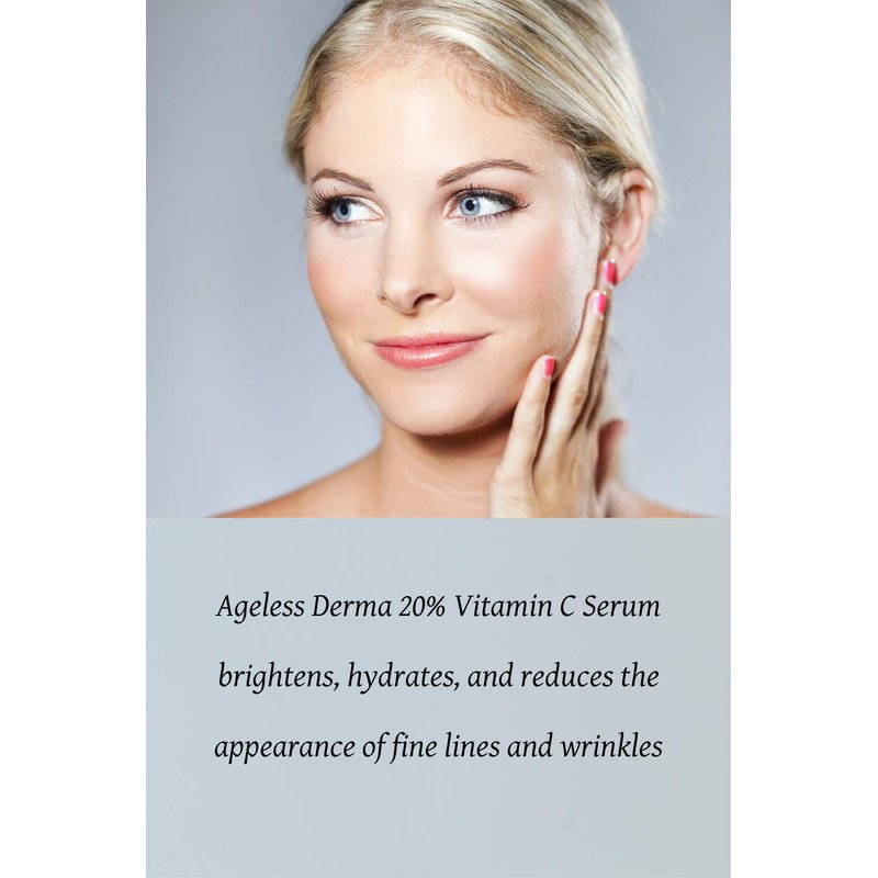 Ageless Derma 20% Vitamin C serum Improves the appearance of skin tone and texture with organic ingredients for Plump, hydrated, and healthy-looking skin. This serum also contains vitamin A (retinol), Vitamin E, hyaluronic acid, and certified organic extracts of green tea, chamomile, and aloe Vera for a healthy and youthful look.