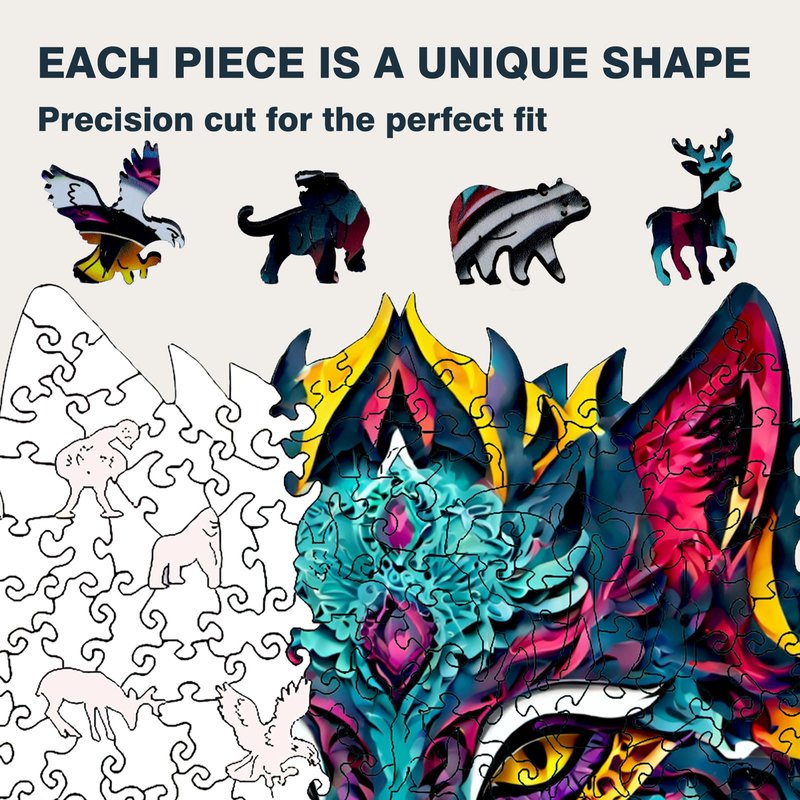 - Unique Shape Puzzles: Unlike traditional rectangular puzzles, with their unique shapes and intricate designs, the wolf puzzles offer a fun and challenging experience for even the most experienced puzzlers.Each piece is so vibrant and sturdy.
