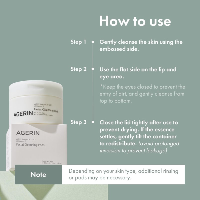 - EASY DAILY BEAUTY: Ideal for those on-the-go or with limited time for skincare, Agerin Facial Cleansing Pads simplify routines. No rinsing needed, making them perfect for those unable to rinse with water due to dermatological treatments or other circumstances.
