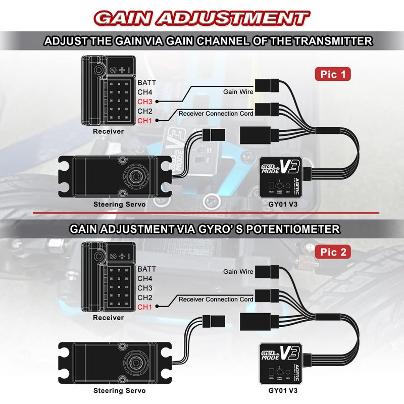 AGFRC Dual-Gain Drift RC Gyro - Tuned Rated Gyros with Aluminum Case for RC Car Boat (GY01 V3)