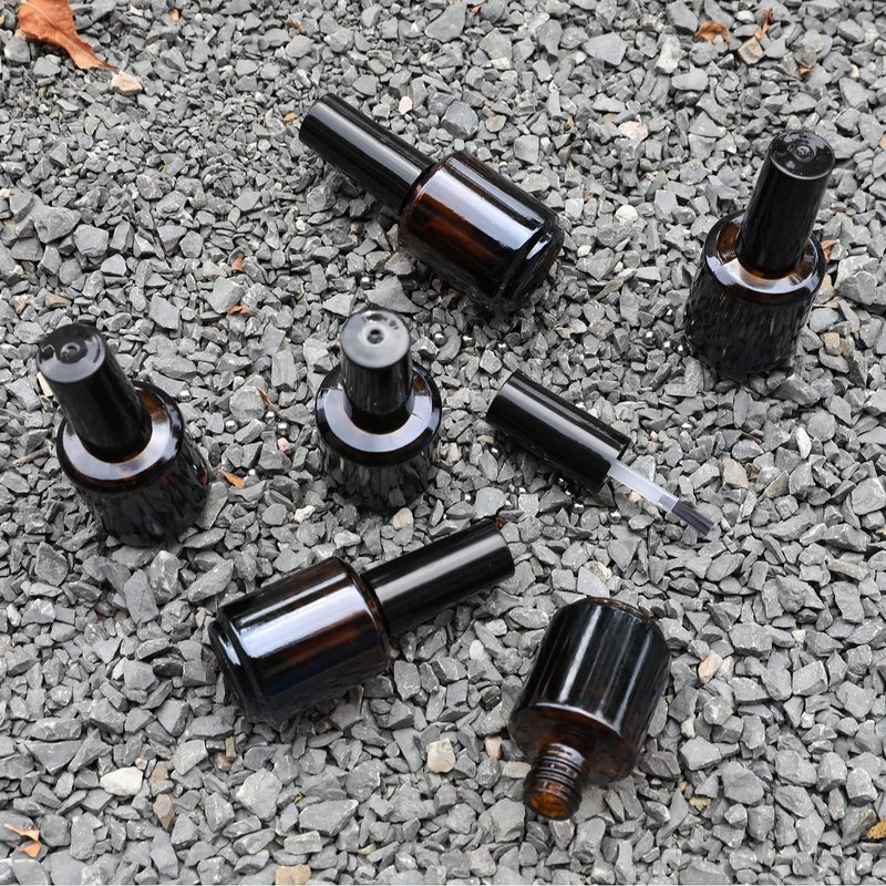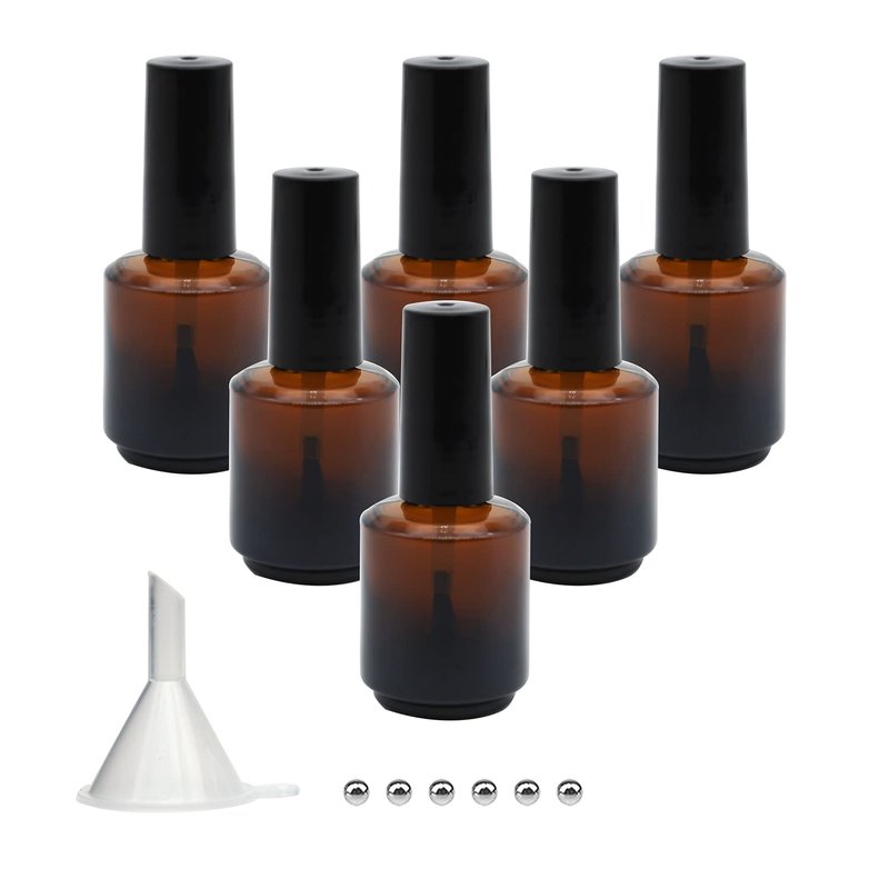 Agidea 6PCS Empty Nail Polish Bottles Amber 15ML/0.5 oz, Empty Dark Glass Refillable Nail Polish Bottles with Brush & Mixing Balls & Funnels,Brown