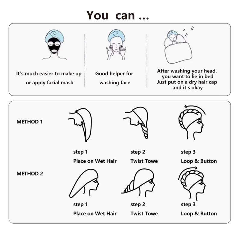 - SUITABLE FOR ALL TYPES HAIR -- No matter your hair is curly, straight, dry, oil, dyed or dyed to super-straight. Hair turbans for wet hair meet the needs of your family.