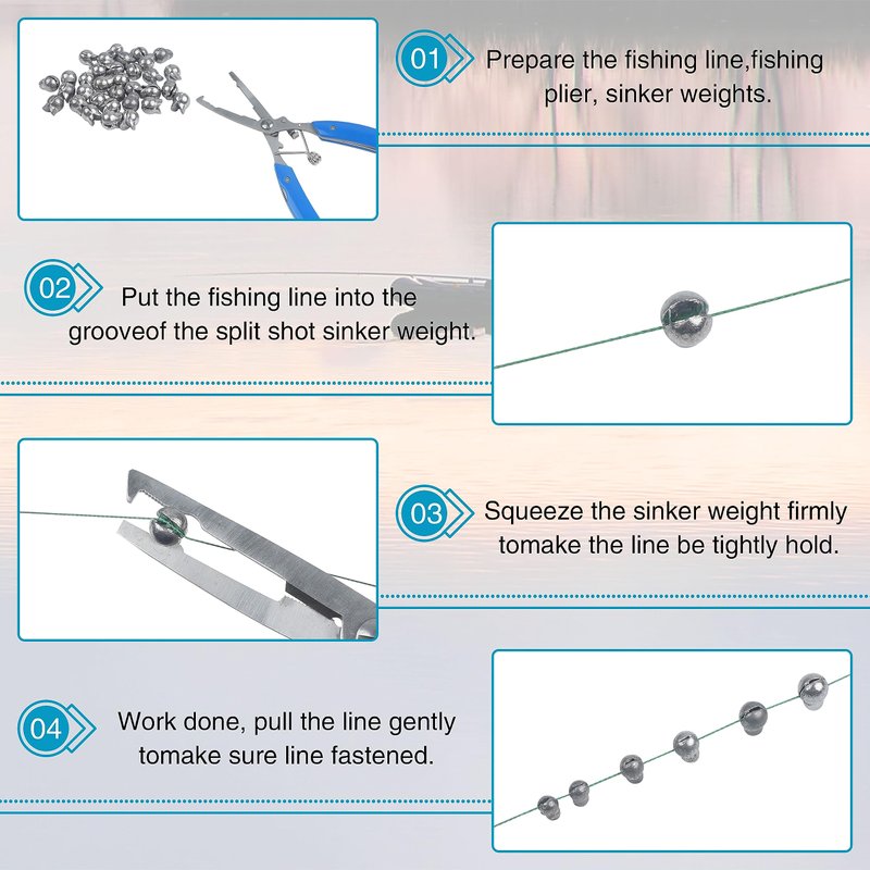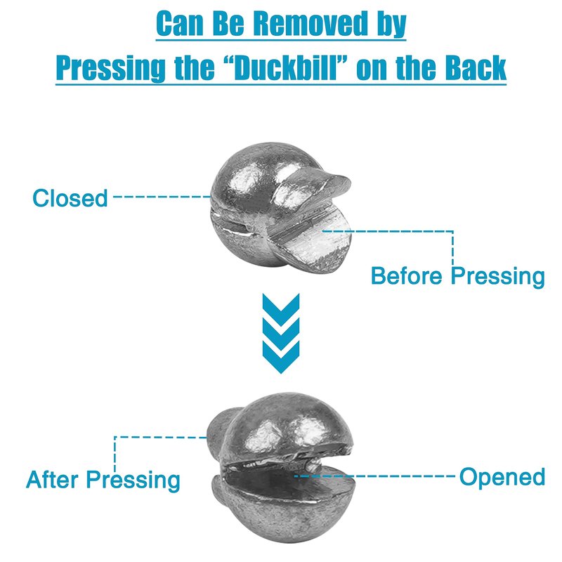 - 【Reusable Split Shot Sinkers】Easy to close and open. Put your line into the groove and take fishing pliers to squeeze, or open along the opening edge easily. The round split shot fishing weight provides you with a simple way to add or remove weights to your fishing line if necessary