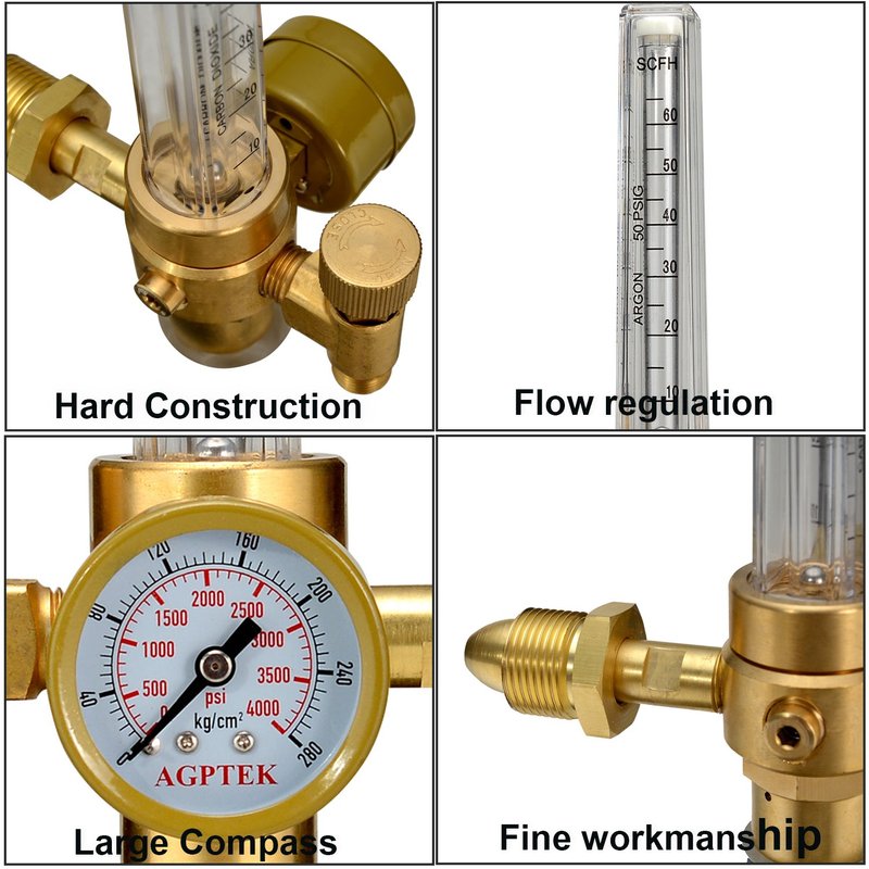 AGPTEK HF43U Designed for MIG & TIG applications and provide accurate regulator of gas flow. Dual scale gauge with unbreakable polycarbonate lens for durability.