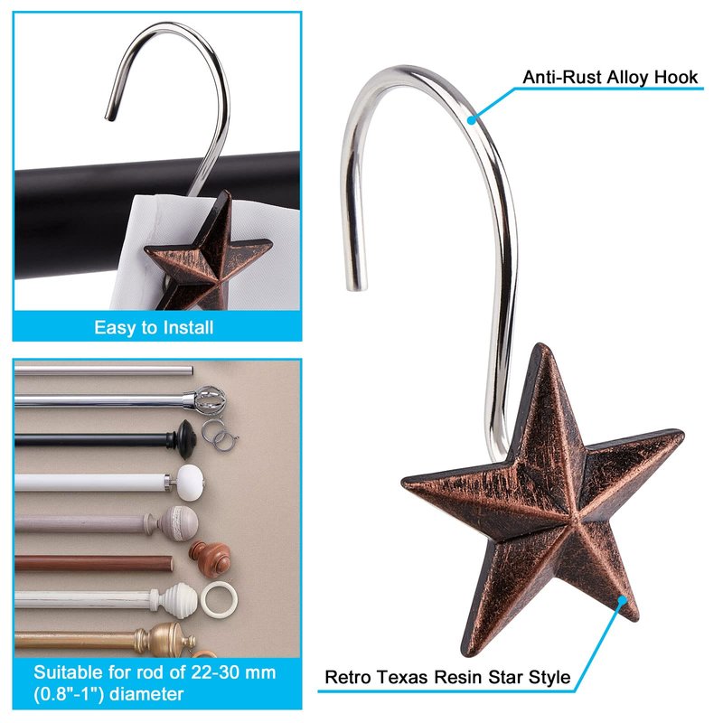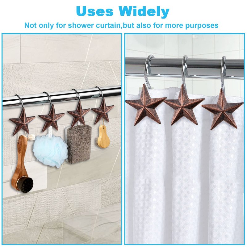 - ♦ Pretty and Attractive Design -- These star decorative shower curtain hooks are very unique and rare. The great retro style will be your better choice than steel hooks.