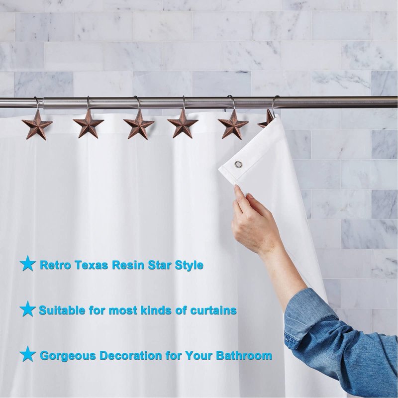 - ♦ Set of 12 PCS Shower Curtain Hooks -- This package includes 12 pcs shower curtain hooks with beautiful resin star.