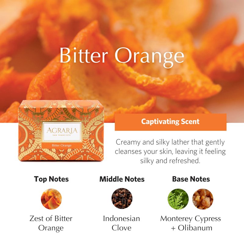 - Luxury Bathing Experience: Indulge in the delicate, soothing aroma of Agraria’s luxury bar soap, featuring a citrusy blend of bitter orange zest, indonesian clove, and a warm base of monterey cypress and olibanum that elevates your bath atmosphere