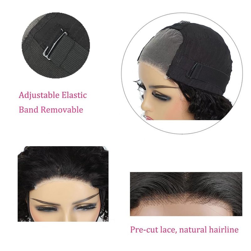 Ahaisy Wear and Go Glueless Wig Short Bob Wigs Human Hair Pre Plucked Pre Cut Body Wave Lace Front Wigs for Black Women Glueless Upgraded No Glue 4x4 Lace Closure Wigs for Beginners (8 Inch)