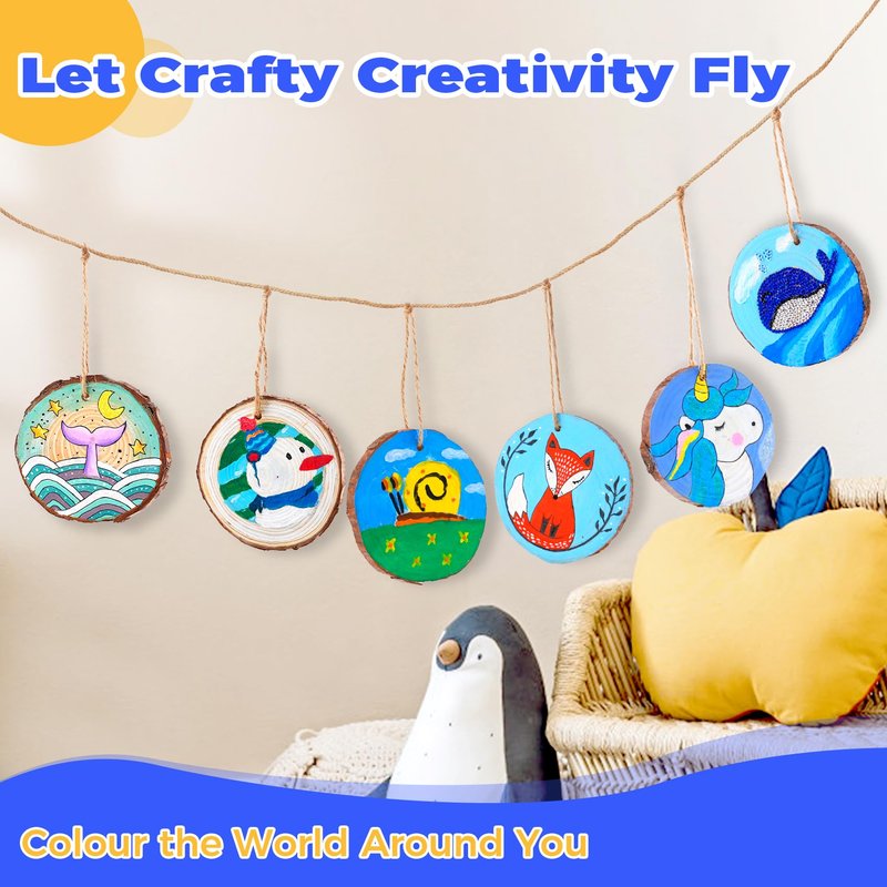 - 【Colored Your World】 Wood slices drilled with small holes, with ropes are ideal for preserving works of art, easy to hang and decorate, enhancing your kids sense of achievement as well as colouring the world around them.