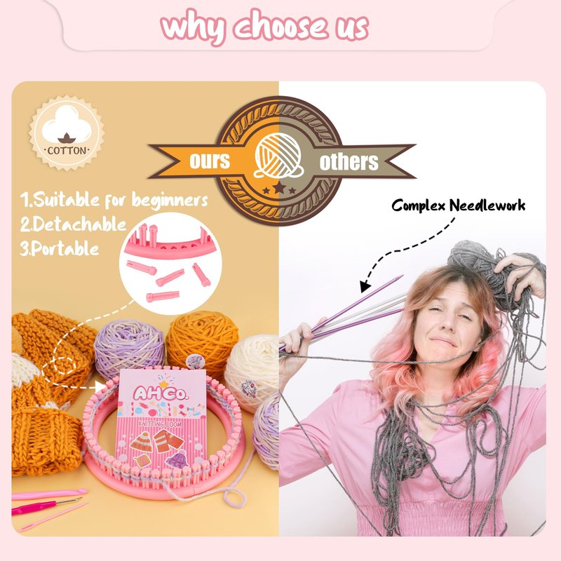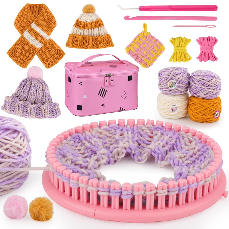 AHCo. Knitting Loom Kit for Beginners, Creative Craft Toy for Girls Ages 7 8 9 10 11 12 with Storage Bags Yarns Knitting Tools, Fantastic DIY Gifts Knit Hat Scarf Coaster