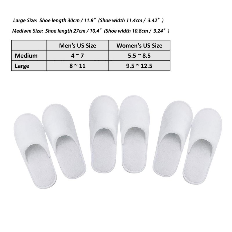 AhfuLife echoapple 5 Pairs of Deluxe Closed Toe White Slippers for Spa, Party Guest, Hotel and Travel (Large, White-5 Pairs)