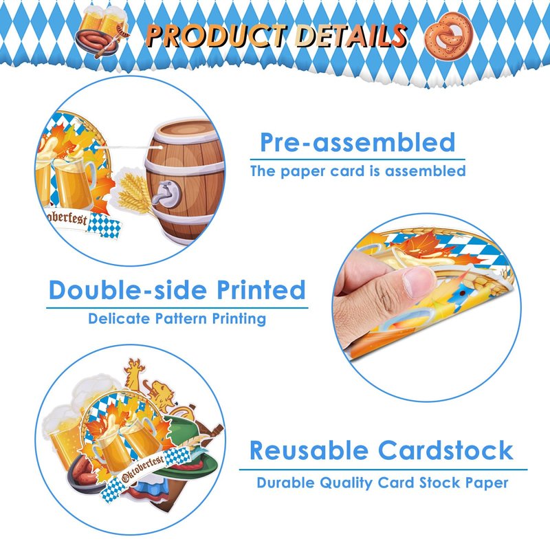 - 【Premium Material】:The Oktoberfest banner is made of high quality thick cardboards which are high-definition printed with bright colors. They will be a beautiful scenery line in your party and also be a great a photo prop at the same time.