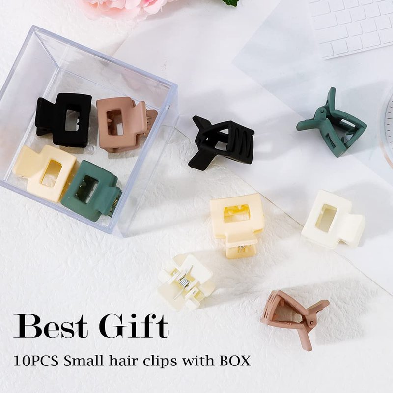 - 【GIFT BOX PACKAGE】You will get 10pcs small hair clips packaged in a hard box, for you convenient storage and protecting clips from damage in transit. This fashion claw clips set is a super cute gift choice for your girlfriend, sister, child or yourself on birthday, Valentine's Day, Mother's Day, Christmas and any other importance days.
