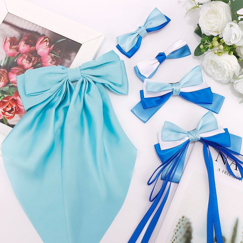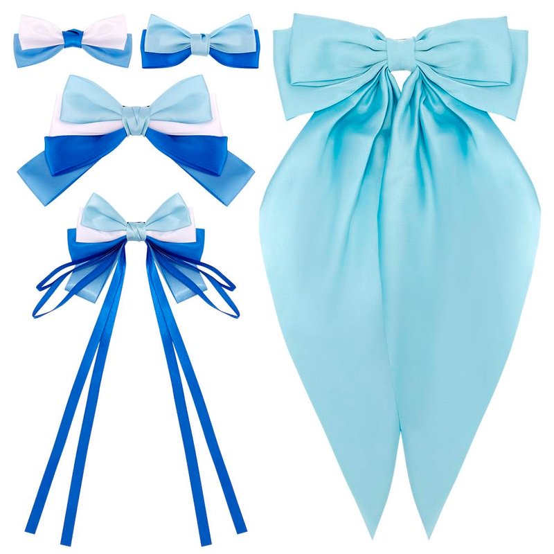 AHONEY 5 Pack Blue Hair Bows for Girls Hair Clips, Satin Hair Bow Princess Dress Up Hair Ribbons Cute Bow for Hair Accessories for Girls Women Princess Birthday Party Favors Decorations Gifts (Elsa)