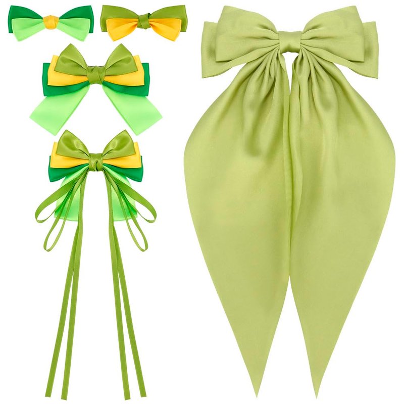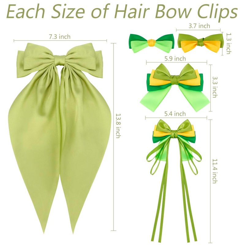 AHONEY 5 Pack Green Hair Bows for Girls Hair Clips, Satin Hair Bow Princess Dress Up Hair Ribbons Cute Bow for Hair Accessories for Girls Women Princess Birthday Party Favors Decorations Gifts (Tiana)