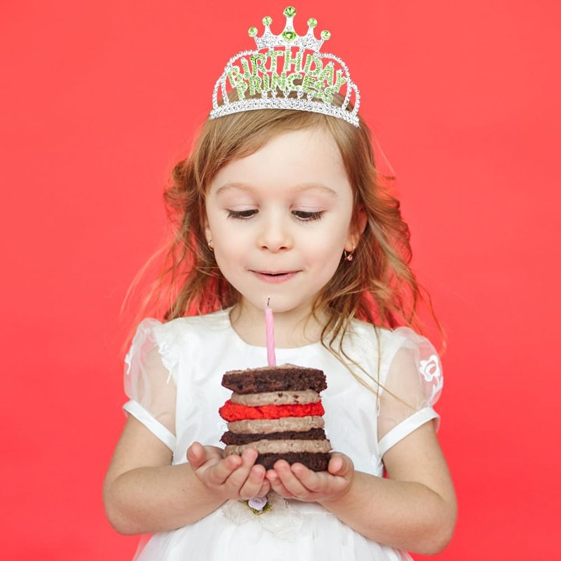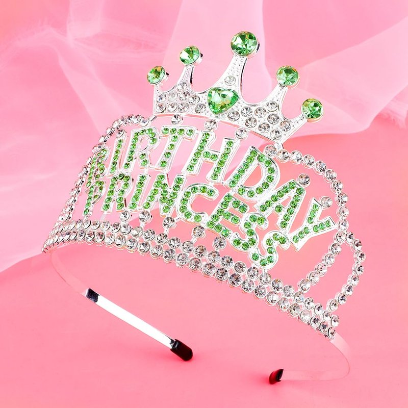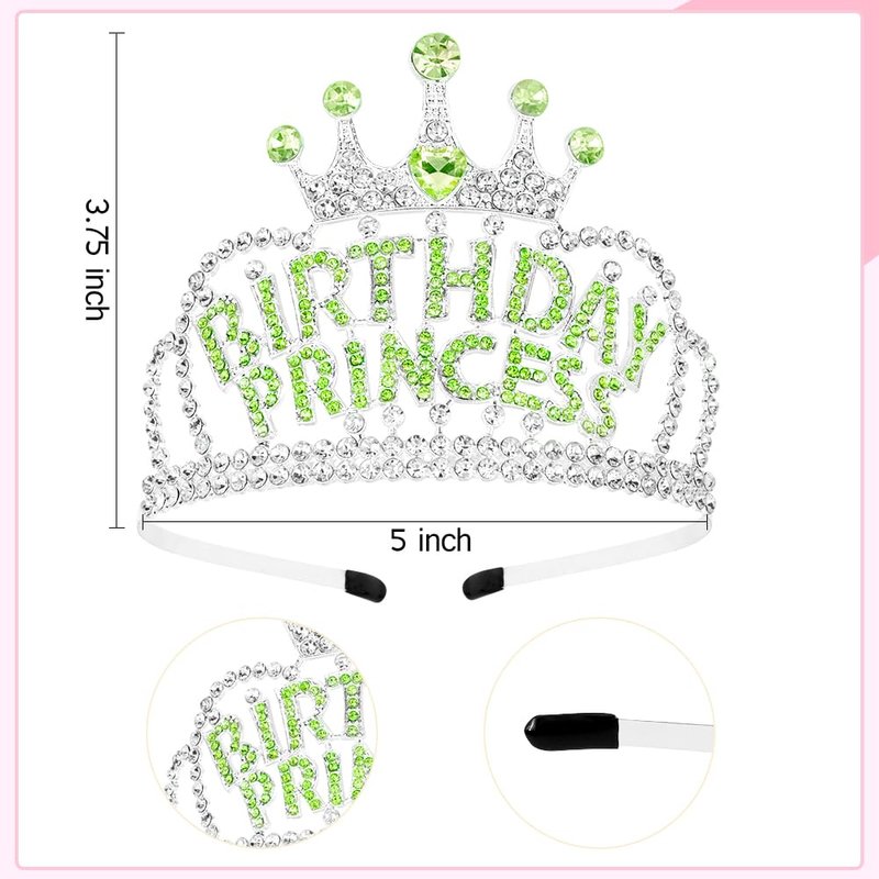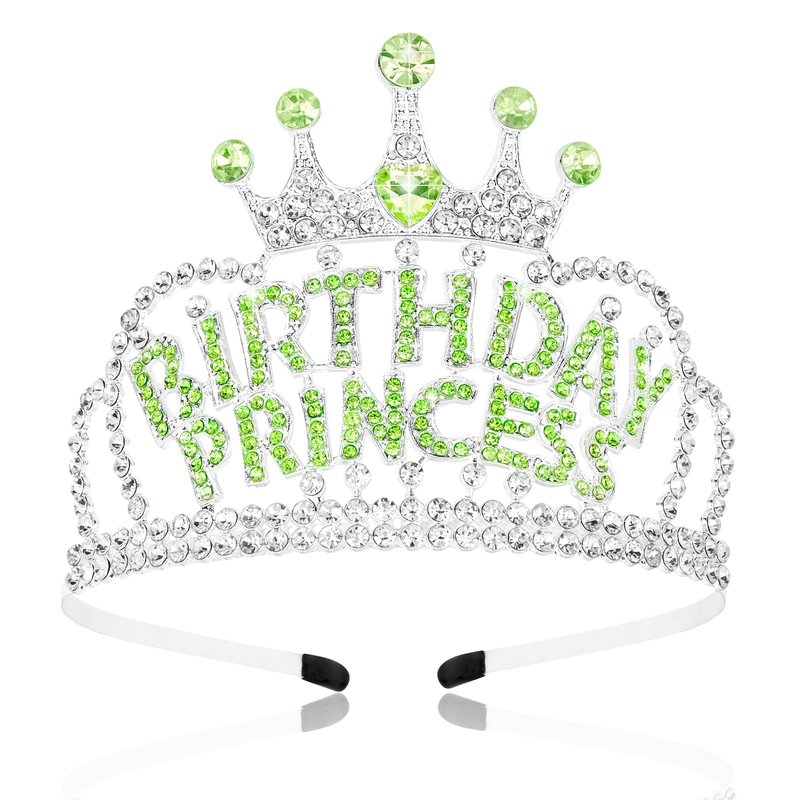 AHONEY Birthday Princess Crown Tiara for Girls Women, Birthday Girl Headband, Happy Princess Birthday Party Decorations Gifts (Green)