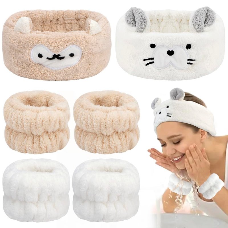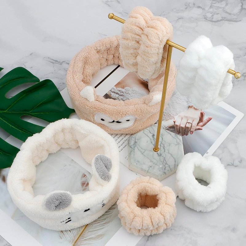 - 【Package Content】A pack of 2pcs spa headbands and 4pcs matching wristbands. Skincare headbands can not only be a cute hair decoration, but also be a spa hair headband, to keep your hair away from your face when makeup or face washing.
