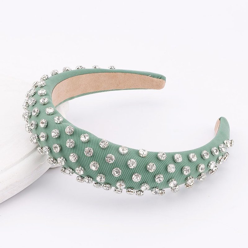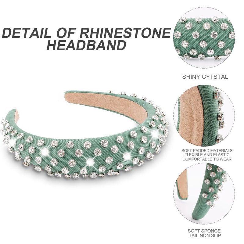 AHONEY Green Headband for Women Girls, Hair Bling Rhinestone Crystal Glitter Sparkly Diamond Padded Headband Fancy Jeweled Headpiece Holiday Hair Accessories Birthday Gifts (Green)