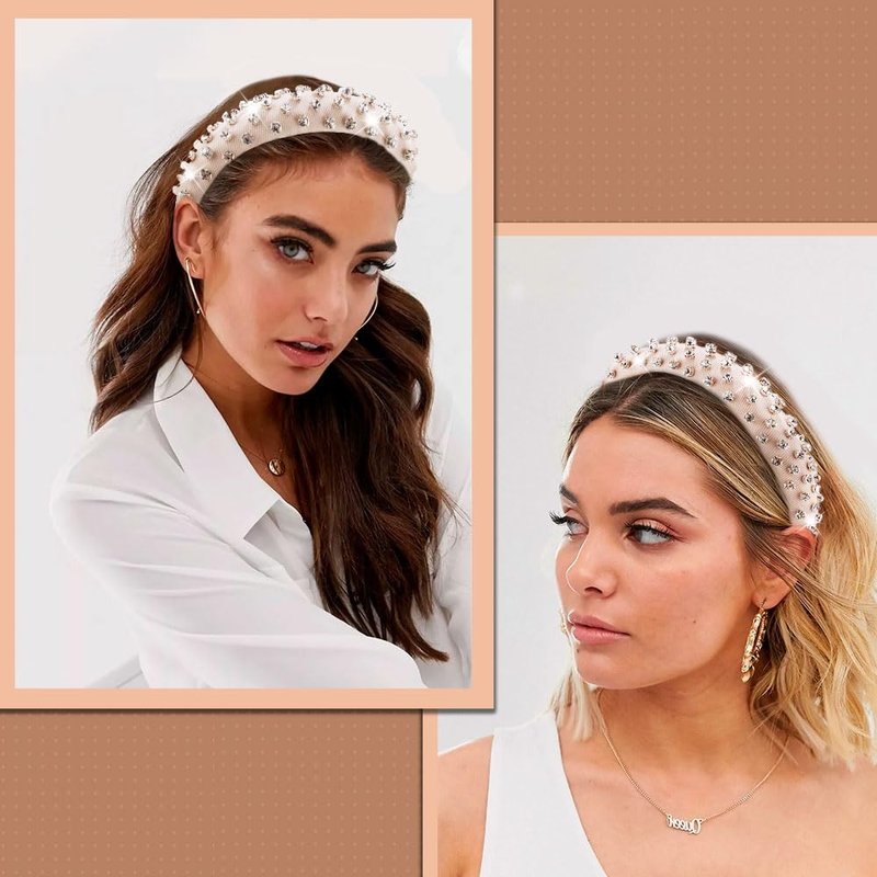AHONEY Rhinestone White Headband for Women Girls, Hair Bling Crystal Glitter Sparkly Diamond Padded Headband Fancy Jeweled Headpiece Holiday Hair Accessories Birthday Gifts (White)