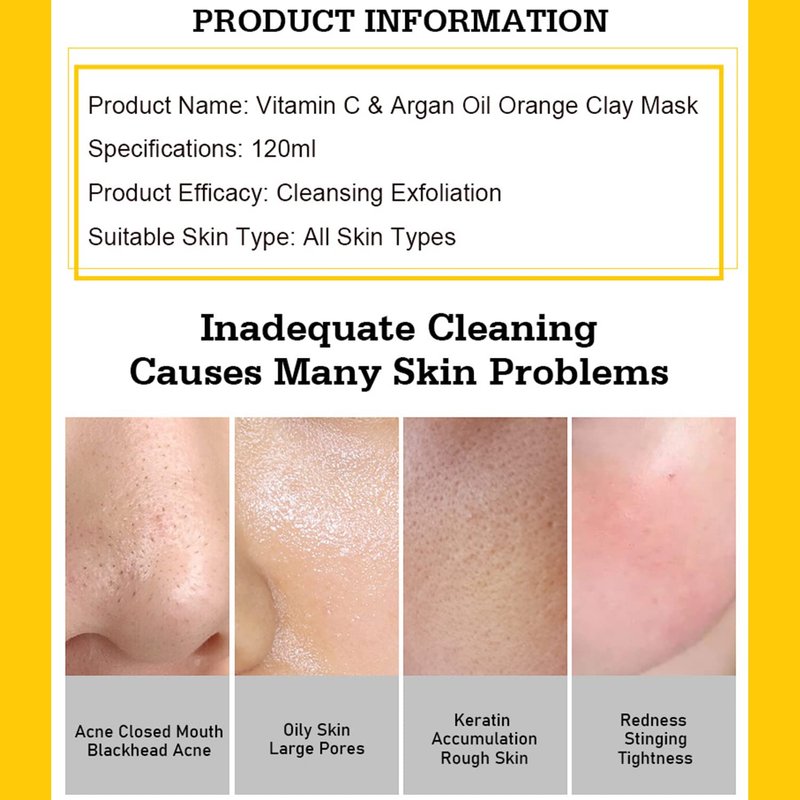 AICHUN BEAUTY Orange Clay Vitamin C Argan Oil Extract Cleansing Exfoliation Anti-Freckle Anti-Oxidation 120ml/4.06fl.oz