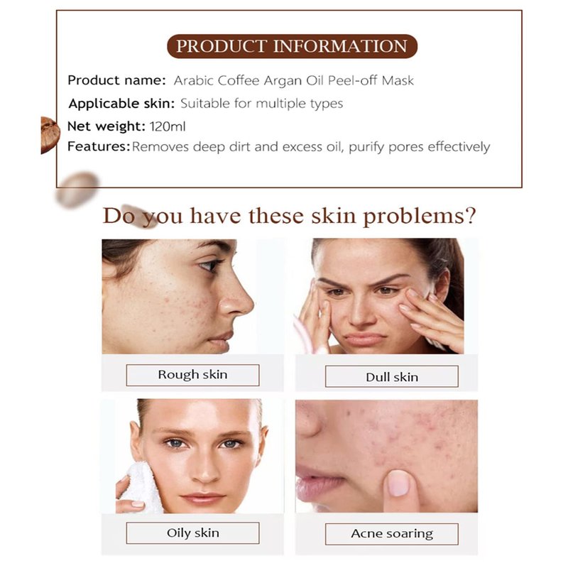 AICHUN BEAUTY Peel-Off Facial Mask Deep Cleansing Oil & Dirt Pores Face Skin Recover Vitamin A & E 120ml/4.05fl.oz (ARABIC COFFEE ARGAN OIL PEEL-OFF MASK)