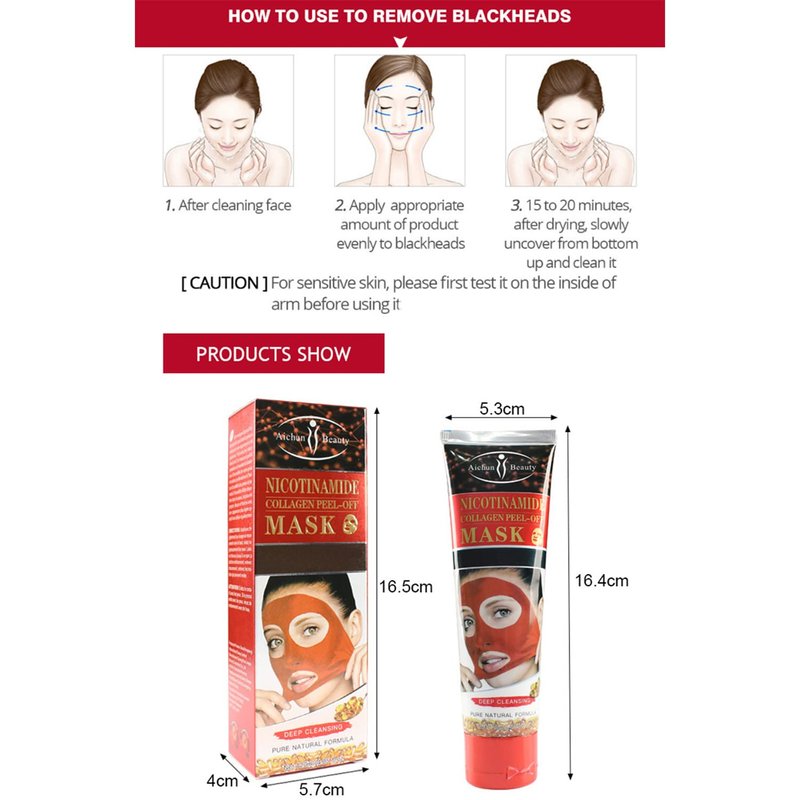 AICHUN BEAUTY Peel-Off Facial Mask Deep Cleansing Oil & Dirt Pores Face Skin Recover Vitamin A & E 120ml/4.05fl.oz (NICOTINAMIDE COLLAGEN PEEL-OFF MASK)