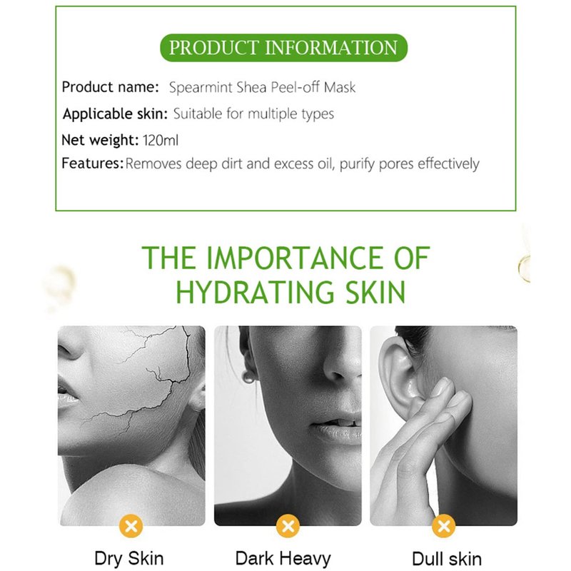 AICHUN BEAUTY Peel-Off Facial Mask Deep Cleansing Oil & Dirt Pores Face Skin Recover Vitamin A & E 120ml/4.05fl.oz (SPEARMINT SHEA PEEL-OFF MASK)