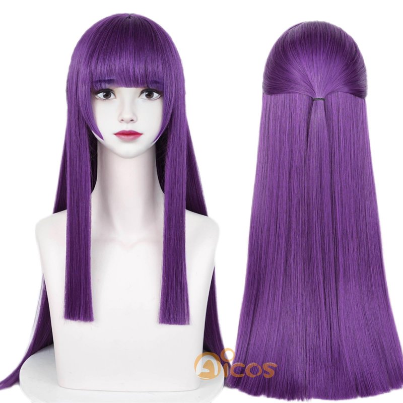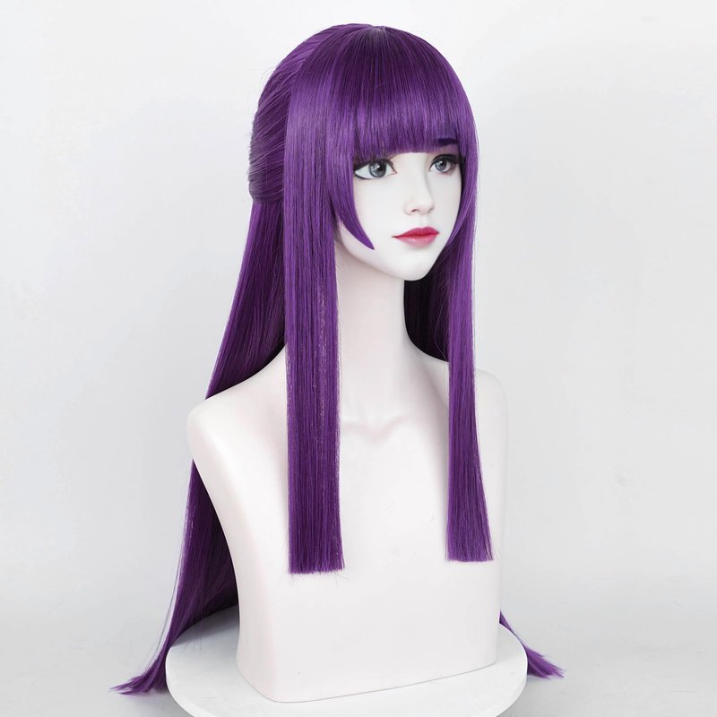 Aicos Long Straight Purple Cosplay Wig with Bangs for Women Cosplay Fern+ Wig Cap