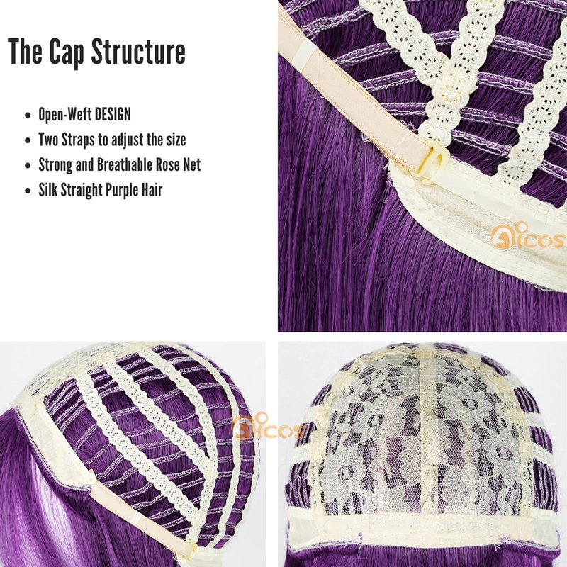 - * Warm Remind: A Wig Cap will be sent with the Purple straight wig and it is used to fix your own hair better. The wig needs to be re-style by yourself when received because it may be flat and squeezed after long-term transportation.